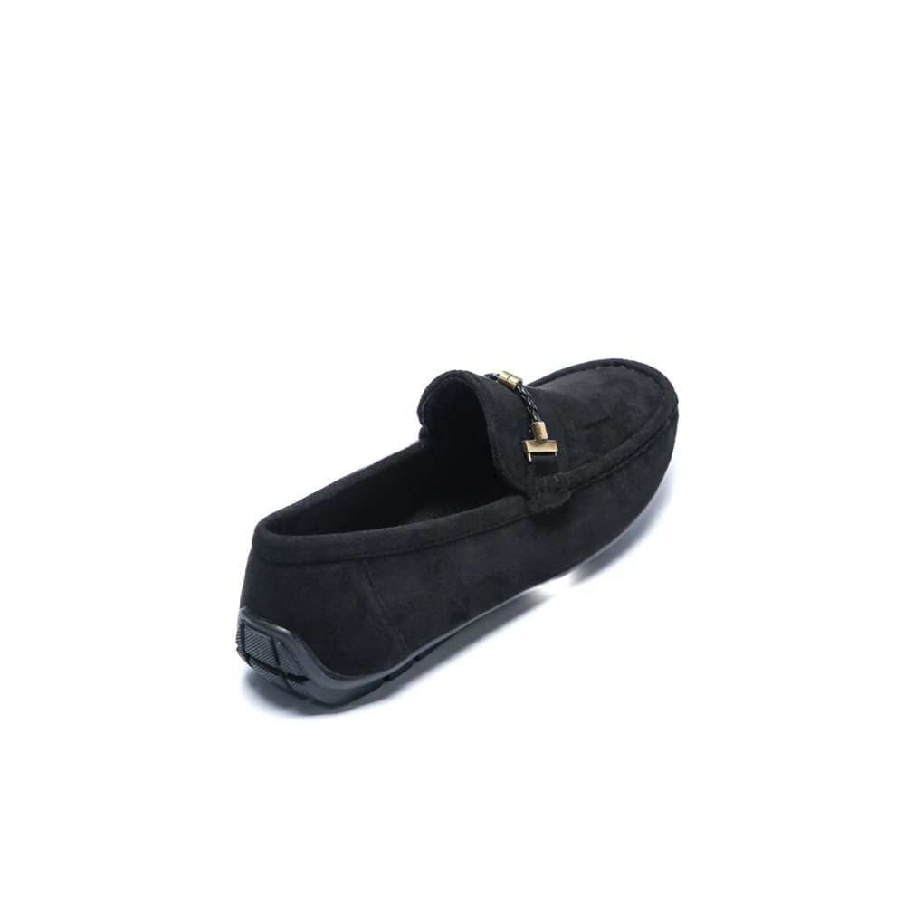 De instappers zijn uitgevoerd in klassiek zwart en hebben een elegante afwerking met subtiele stiksels.